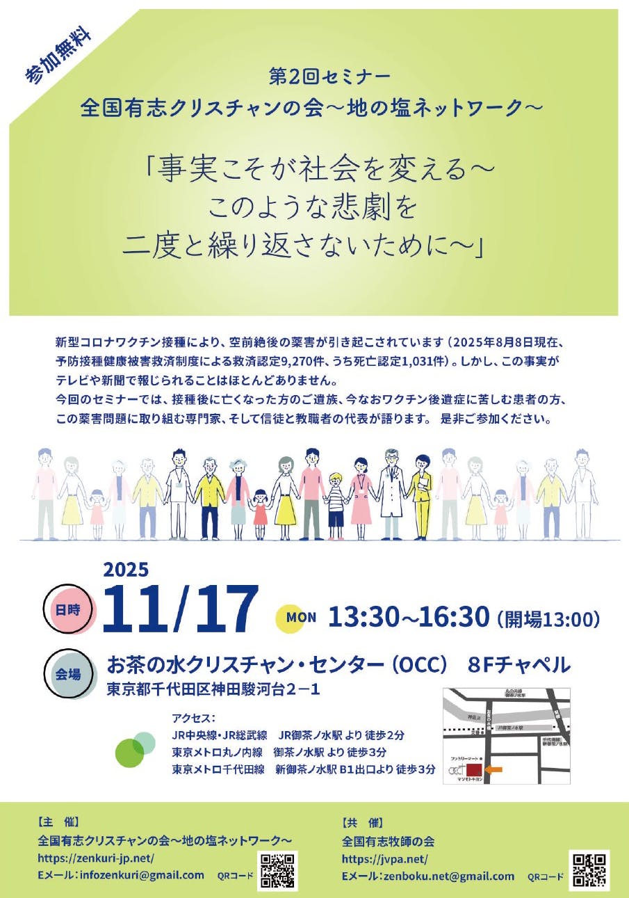 2020年に始まったコロナ禍、2021年に接種が始まってからのワクチン禍とマスク着用による弊害に気づき出したクリスチャンが、いったい何が問題なのか? この日本社会の姿を、天地万物を創造され私たち人間をも造られて、この地上の管理を任せてくださった神様は、喜んでおられるのだろうか? と疑問に思い祈る中で、同じ志を持つクリスチャンが全国から集まりました。